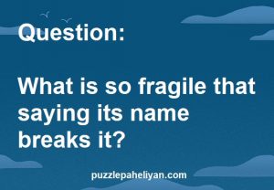 What Is So Fragile That Saying Its Name Breaks It Riddle is a tricky and difficult riddle. Here is the correct answer. The question is been trending on the internet any people is be asking about the “which is so fragile that saying its name can break it.” It’s a